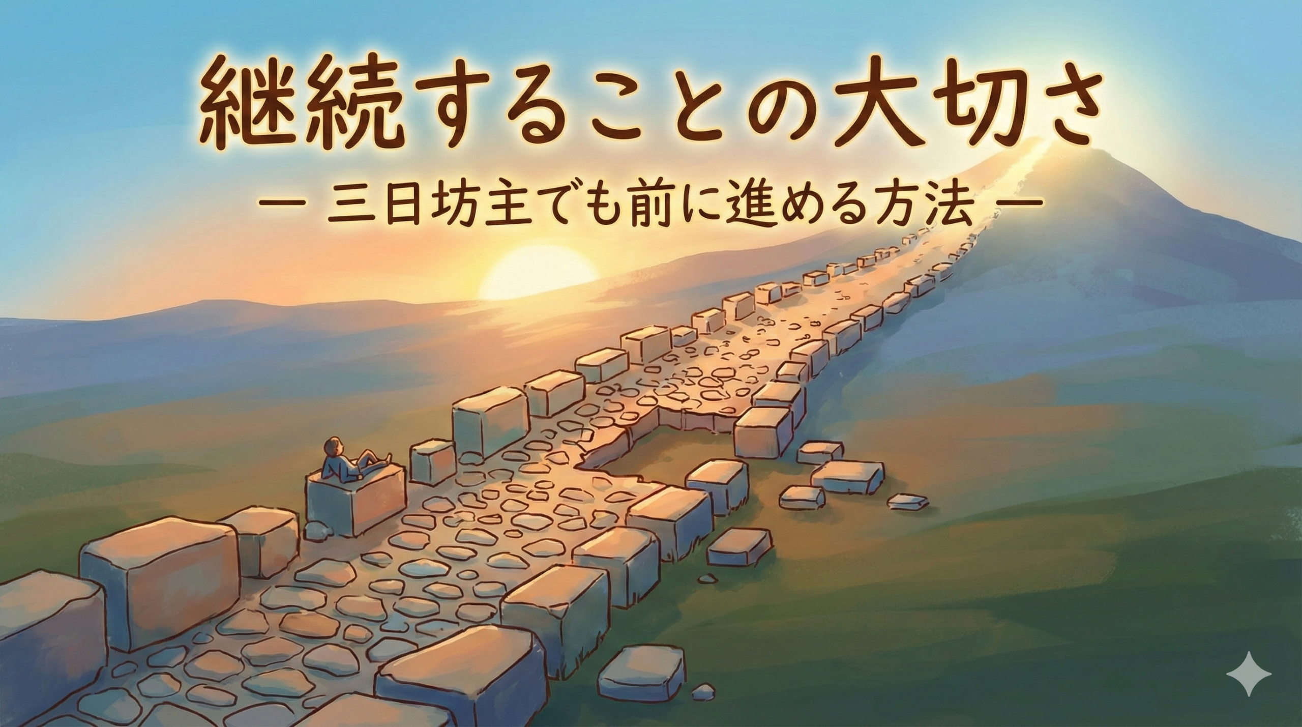 もし今日「何か続けたいな」と思ったら、まずは小さく、そして気合に頼らない形で始めてみてください。三日坊主でも、何度戻ってきても大丈夫です。続けようとすること自体が、すでに前進なのです。