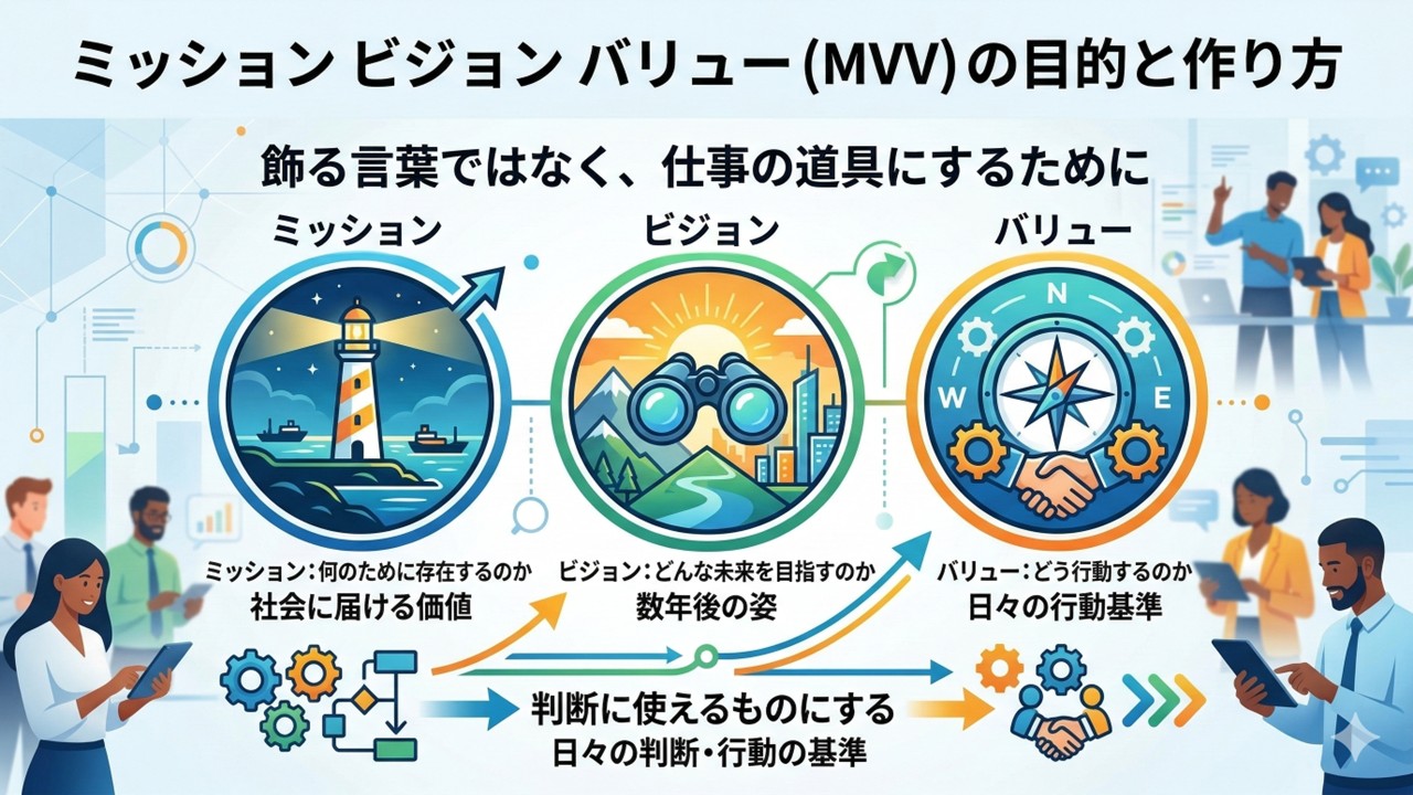 この記事では、MVVの目的と、わかりやすい作り方を整理してご紹介します。