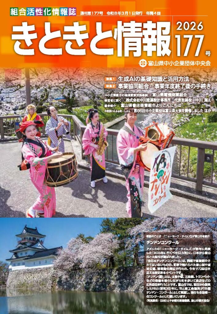 富山県中小企業団体中央会様が年に4回発行している「きときと情報」の177号に、執筆した記事「生成AIの基礎知識と活用方法」が掲載されました。