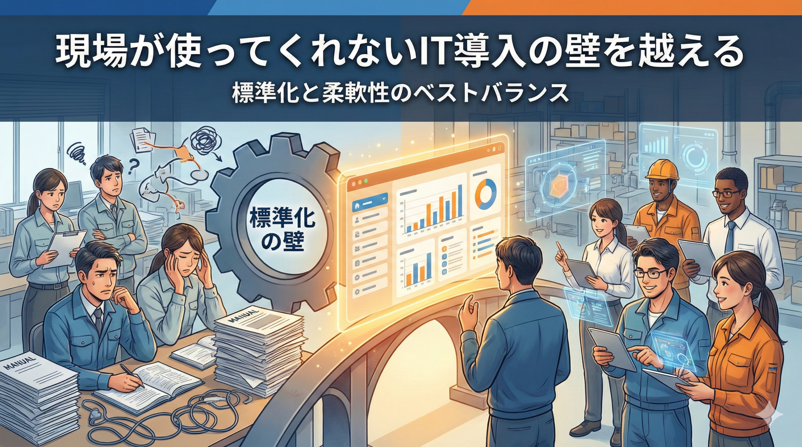 IT化は、多くの場合業務の標準化を伴います。しかし現場の仕事は、マニュアル通りに進まない例外対応の連続です。